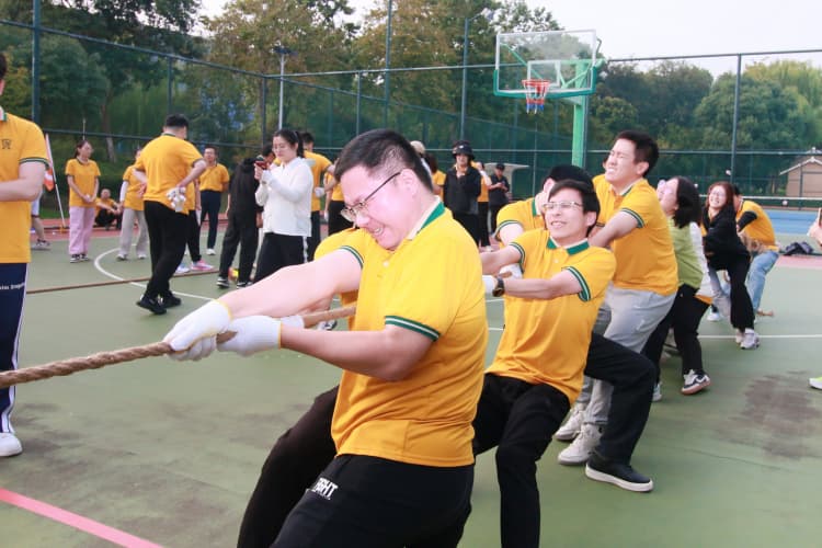第二環(huán)節(jié)的男子籃球賽更是精彩紛呈。球員們?cè)谇驁?chǎng)上奔跑、跳躍、傳球、投籃,每一個(gè)動(dòng)作都充滿(mǎn)力量與激情。場(chǎng)上選手你爭(zhēng)我?jiàn)Z,場(chǎng)邊啦啦隊(duì)熱情助威,歡呼聲與吶喊聲此起彼伏,將比賽氛圍推向高潮?;@球賽不僅是一場(chǎng)競(jìng)技對(duì)決,更是團(tuán)隊(duì)凝聚力與公司精神風(fēng)貌的生動(dòng)體現(xiàn)。